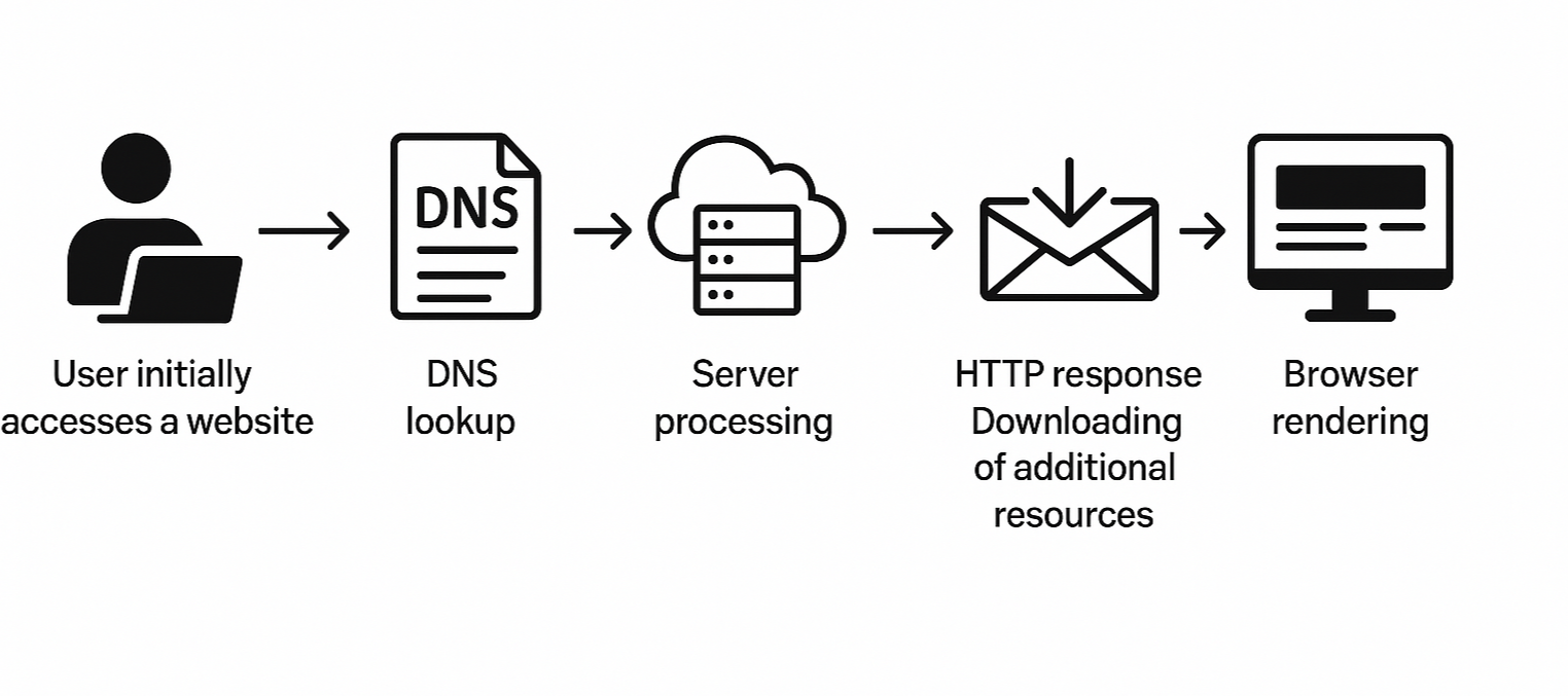 웹사이트에 처음 접속할 때, 브라우저와 서버 간에는 다양한 과정이 발생합니다. 이 과정은 사용자의 요청(Request)이 웹 서버로 전달되고, 서버가 응답(Response)을 반환하여 브라우저가 웹 페이지를 표시하는 흐름으로 진행됩니다. 이번 글에서는 사용자가 웹사이트에 처음 접근할 때 발생하는 주요 단계를 알아보겠습니다.