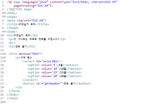 다음 챕터에선 번호뽑기 버튼을 눌렀을 때 DB연결 까지 하여 쿼리로 번호를 추출하여 보여지는 로직까지 만들겠다.