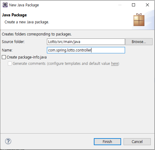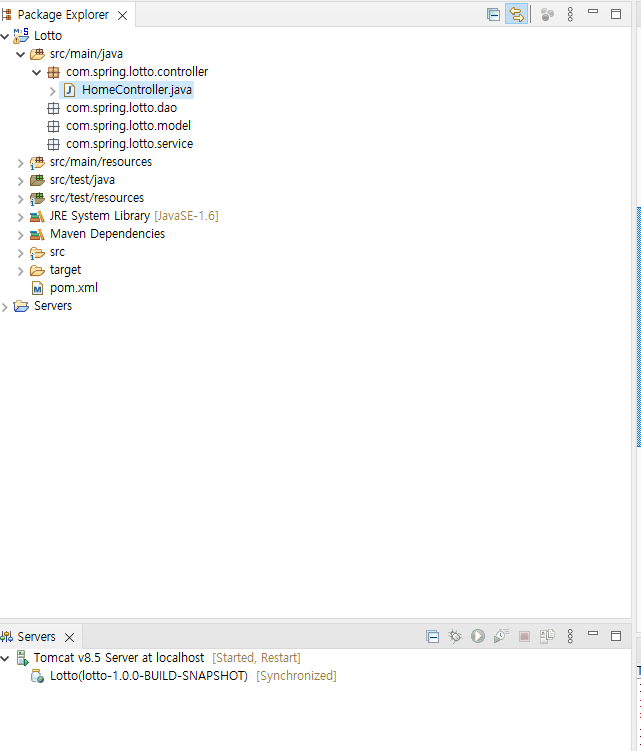 lotto 패키지 하위 폴더로 controller, service, dao, model 폴더를 만들어 준다.