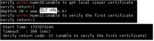openssl s_client -connect 접속URL:포트번호 |tee certlog
