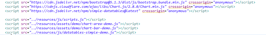 여기서 중요한 js 및 css 의 경로를 바꿔주어야 하는데 현재 특정 인터넷 URL 연결로 받는 애들은 제외하고 본인소스가 들어있는 경로만 바꿔주면 된다.