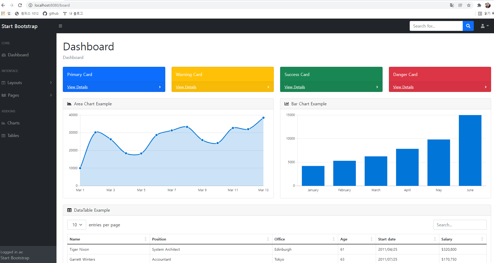 - Start Bootstrap 화면